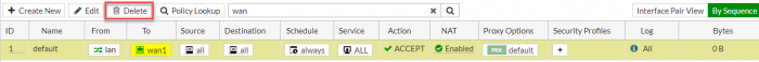 2.3 => ไปที่ “Policy & Objects > IPv4 Policy” และลบ Policy ใดๆ ที่ใช้ WAN1 หรือ WAN2