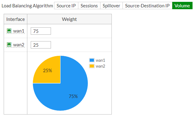 => ในฟิลด์ “Load Balancing Algorithm” เลือก Volume และจัดลำดับความสำคัญ WAN1 เพื่อให้รับส่งข้อมูลมากขึ้น