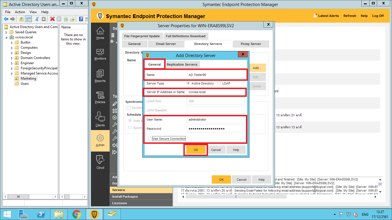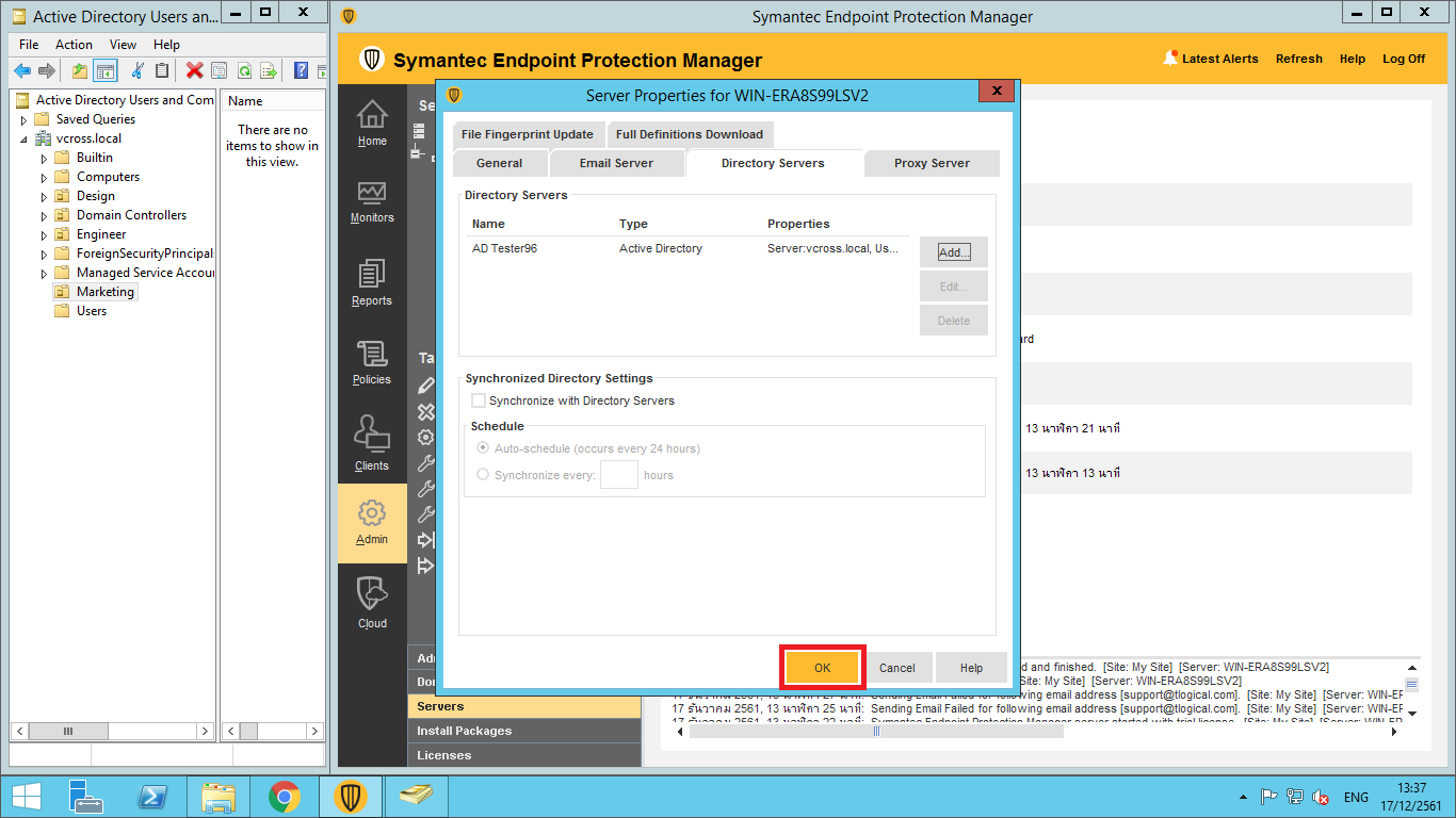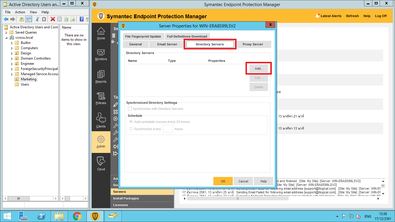 การ Sync Active Directory เข้ามาใน Symantec Endpoint Protection Manager