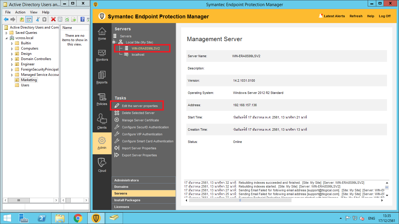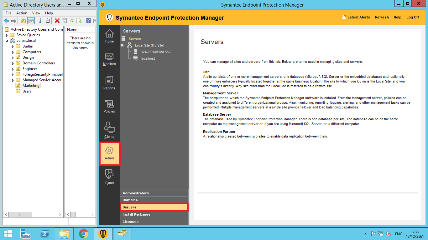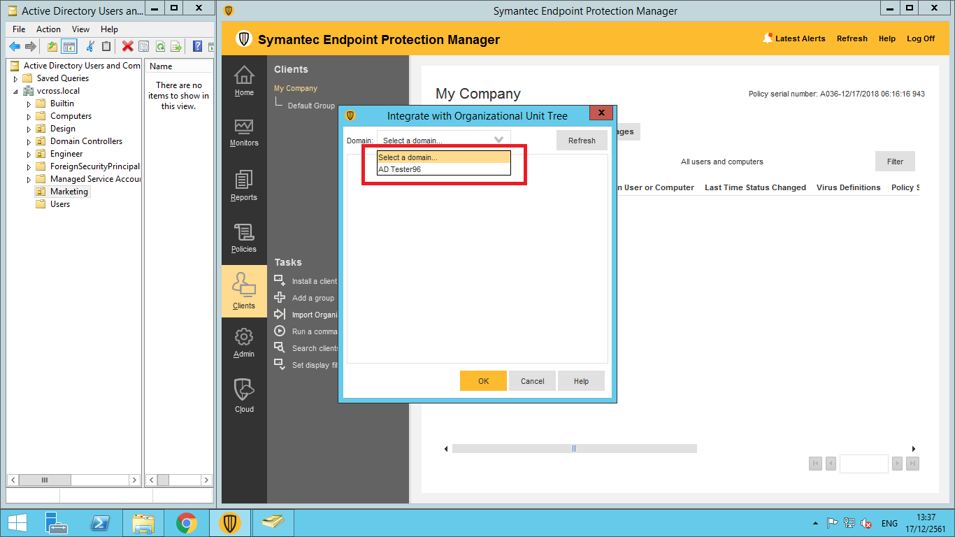 การ Sync Active Directory เข้ามาใน Symantec Endpoint Protection Manager