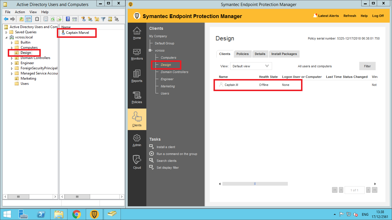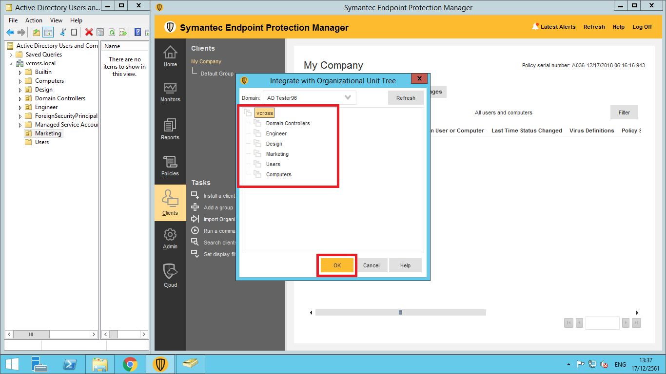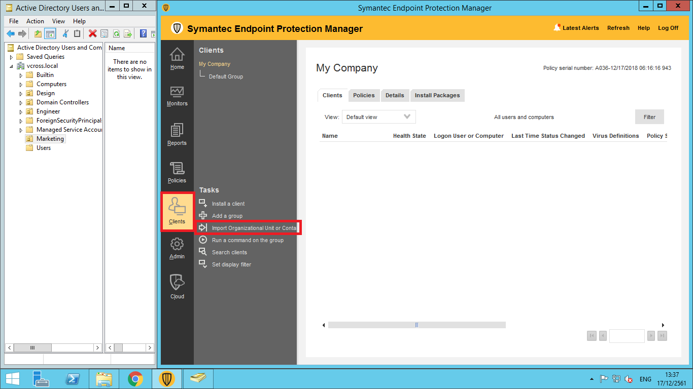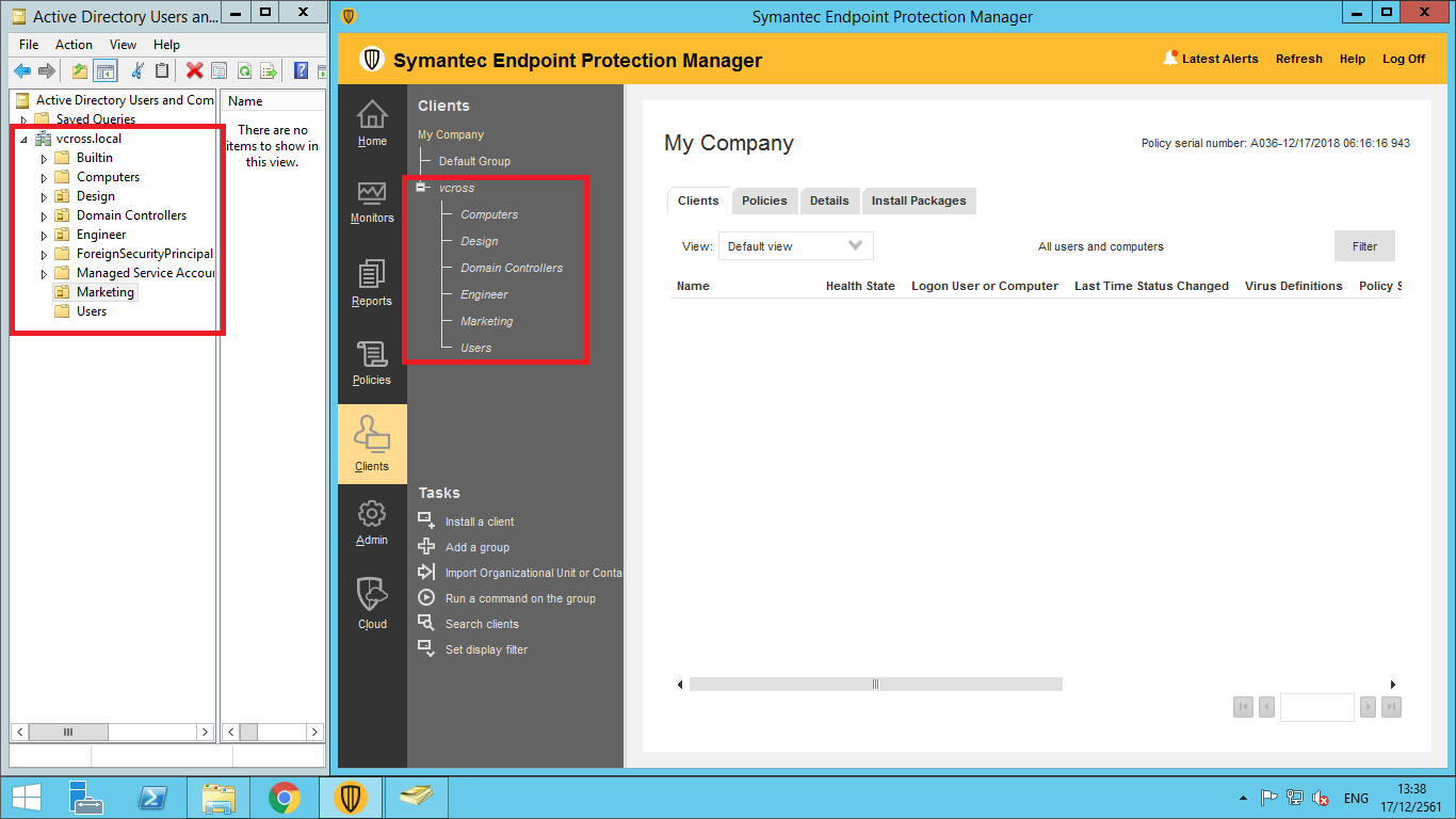 9. จะเห็นว่า Active Directory ได้ถูก Import เข้ามาใน Symantec Endpoint Protection Manager เรียบร้อย