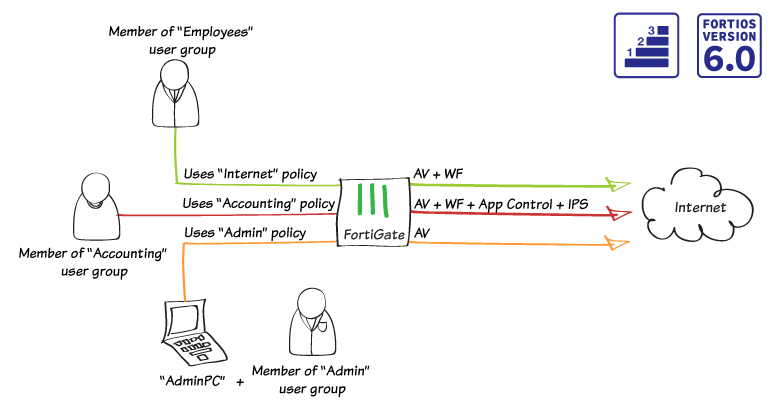 ในกรณีนี้คุณจะสร้าง Security policy หลายอัน ซึ่งจะนำการตรวจสอบความปลอดภัยไปใช้กับUser ที่แตกต่างกันตาม User group ที่พวกเขาอยู่