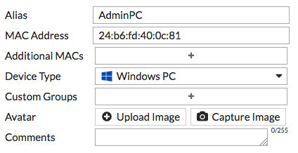=> ตั้ง “Alias” เป็น AdminPC และป้อน MAC Address ของ PC. เลือกประเภทอุปกรณ์ใน “Device Type”