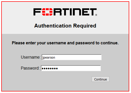 หน้าจอเข้าสู่ระบบจะปรากฏขึ้น ใช้บัญชี jpearson เพื่อเข้าสู่ระบบ หลังจากการ Authentication คุณจะสามารถเชื่อมต่อกับอินเทอร์เน็ตได้