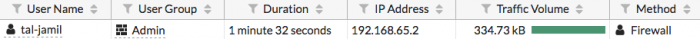 => ตอนนี้ “Firewall User Monitor” จะแสดงให้เห็นว่า tal-jamil มีสถานะ “online” แล้ว และคุณสามารถเข้าถึงอินเทอร์เน็ตได้