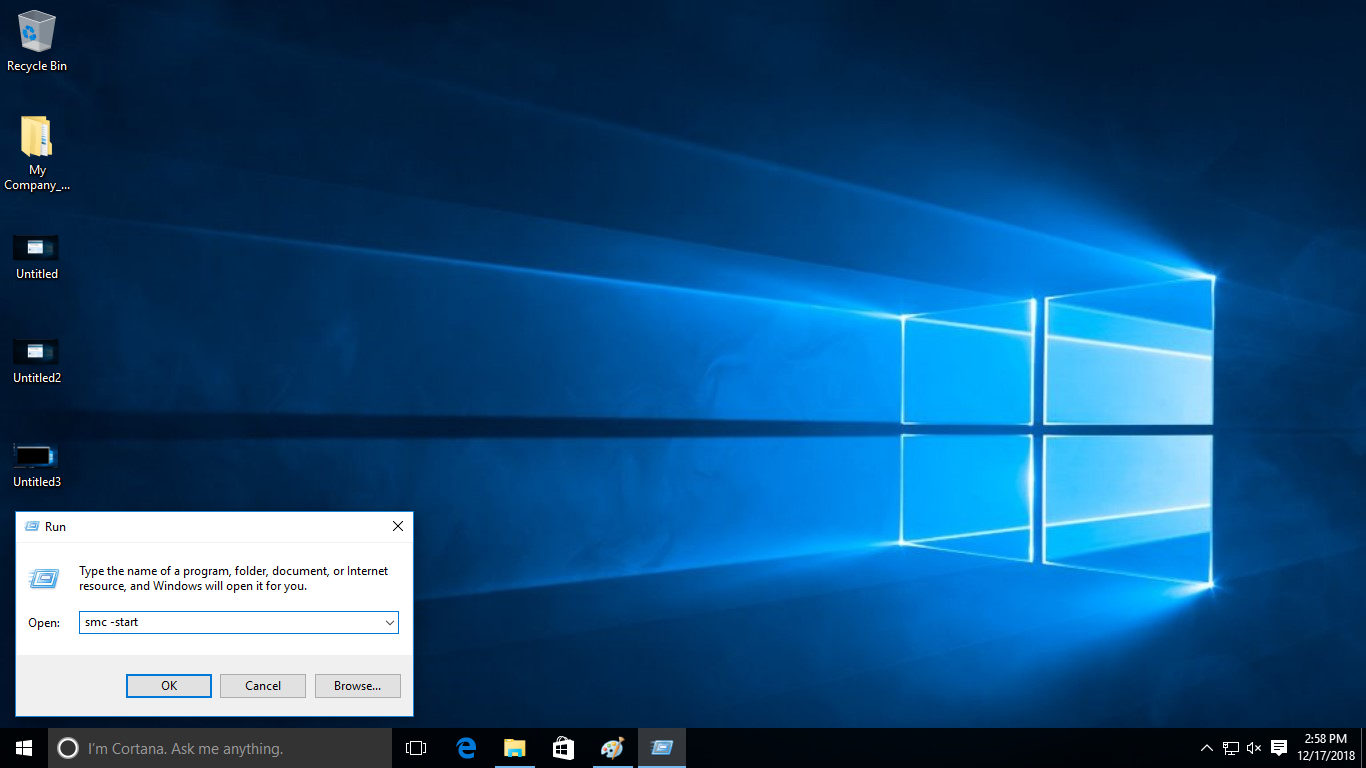 2. พิมพ์คำสั่ง smc –stop ลงไป จากนั้นกด “OK”
