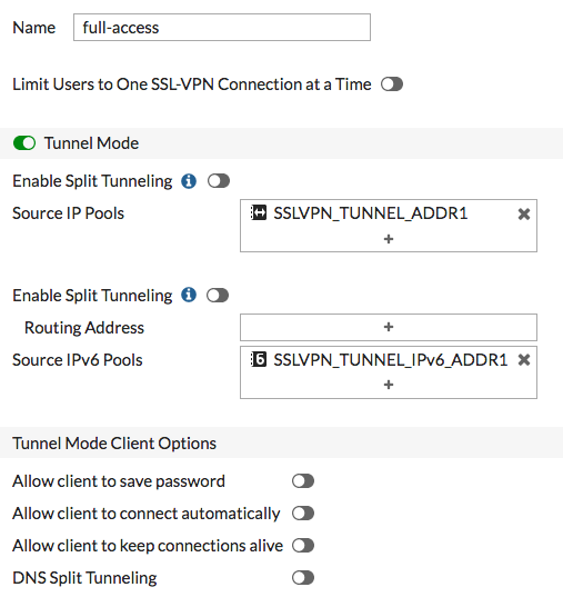 => ตั้ง “Source IP Pools” เพื่อใช้ช่วง Default IP “SSLVPN_TUNNEL-ADDR1”