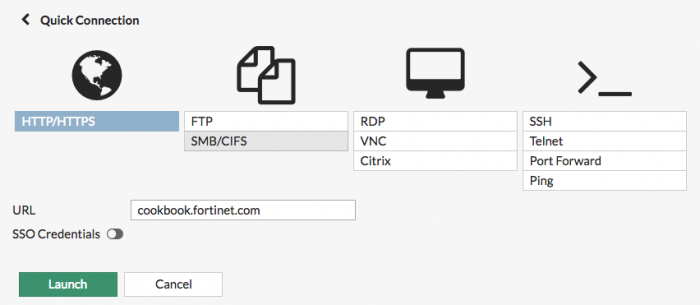 => ในการเชื่อมต่ออินเทอร์เน็ต ให้เลือก Quick Connection เลือก HTTP/HTTPS, จากนั้นป้อน URL และเลือก Launch