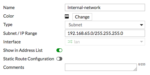 => ตั้งค่า “Type” เป็น Subnet, “Subnet/IP Range” เป็น Local subnet และ “Interface” เป็น lan