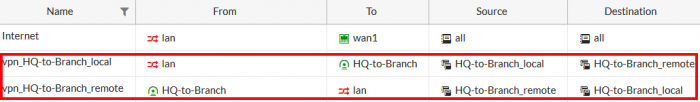 ในตัวอย่างนี้ FortiGate หนึ่ง จะเรียกว่า HQ และอีกหนึ่งเรียกว่า Branch